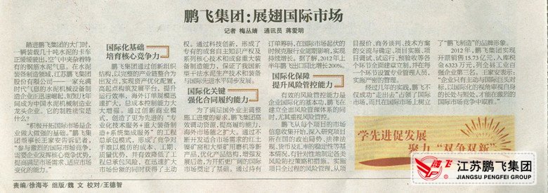 “積極開拓國際市場是企業(yè)做大做強(qiáng)的基礎(chǔ)。”鵬飛集團(tuán)董事長王家安告訴記者,“參與激烈的國際市場競爭,需要企業(yè)發(fā)揮核心競爭優(yōu)勢,提高滿足市場需求、適應(yīng)市場變化的能力。”