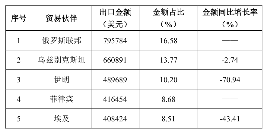 表1 2021年水泥回轉(zhuǎn)窯出口數(shù)量、金額及增長率