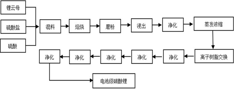 圖:鋰云母硫酸鹽法提鋰生產(chǎn)工藝流程