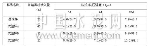 表6 磨細礦渣微粉摻入水泥中的膠砂強度