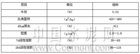 2/kg時,立磨臺時產(chǎn)量達52t/h,系統(tǒng)電耗為37.3kWh/t,制備的礦渣微粉性能見表8: