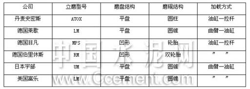 表2 國外立磨基本結(jié)構(gòu)形式