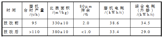 表3 技改前后粉磨系統(tǒng)生產(chǎn)技術指標月平均值