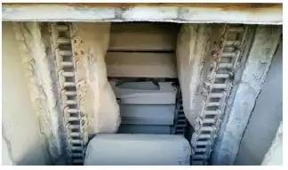 原來設(shè)計是粉磨水泥,調(diào)配原料經(jīng)皮帶輸送提升機,再到鎖風(fēng)閥,后來增加礦渣輸送經(jīng)皮帶輸送到提升機,皮帶機機頭易堵,提升機殼體黏料(如圖3所示)。